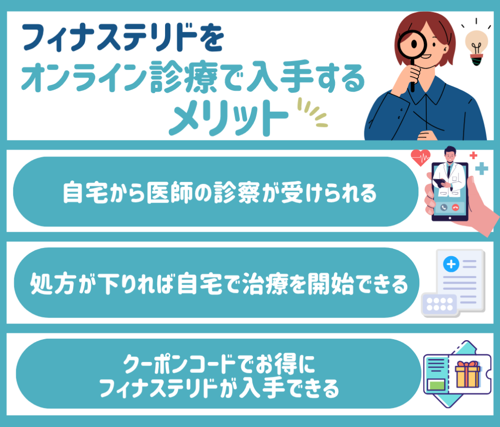 この項目では、フィナステリドをオンライン診療で入手するメリットについて解説します。