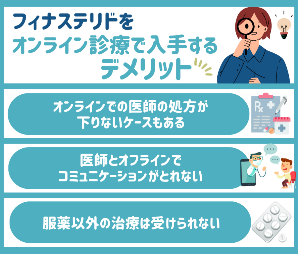 この項目では、フィナステリドをオンライン診療で入手するデメリットについてまとめています。