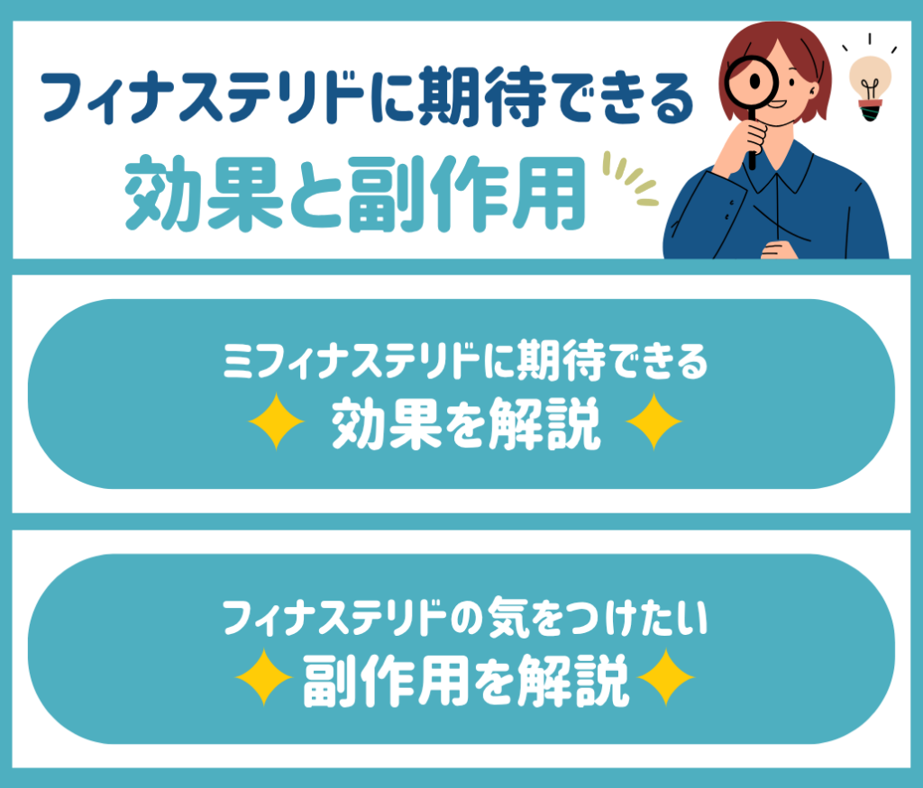 ここでは、フィナステリドに期待できる効果と副作用についてまとめています。
