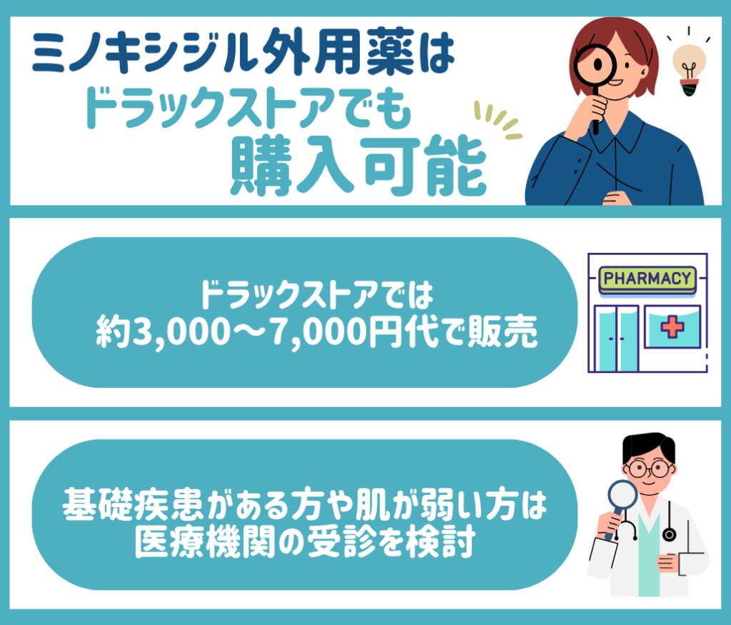 ミノキシジル外用薬は、薬局やドラッグストアでは「第1類医薬品」として市販されており、薬剤師から説明を受けて購入できますが、成分が5%以上のミノキシジル外用薬は個人輸入でも購入可能です。