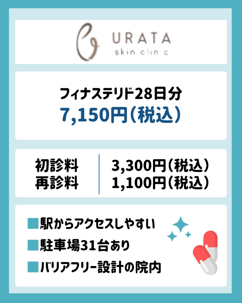 うらた皮膚科は駅からアクセスしやすく、駐車場が31台完備されているので遠方の方でも通院しやすい、日本皮膚科学会認定の皮膚科専門医が診察を行うクリニックです。
