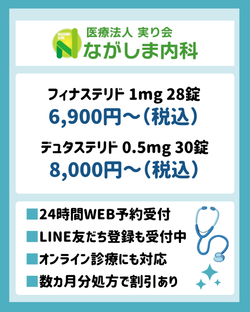 ながしま内科|AGA治療薬3ヶ月・6ヵ月処方で割引きあり