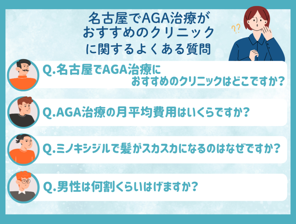 本記事の最後に、名古屋でAGA治療がおすすめのクリニックに関連するよくある質問を4つまとめます。